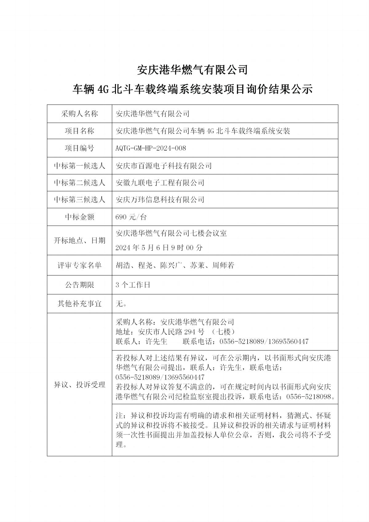 安慶港華燃?xì)庥邢薰拒?chē)輛4G北斗車(chē)載終端系統(tǒng)安裝項(xiàng)目詢(xún)價(jià)中標(biāo)公示