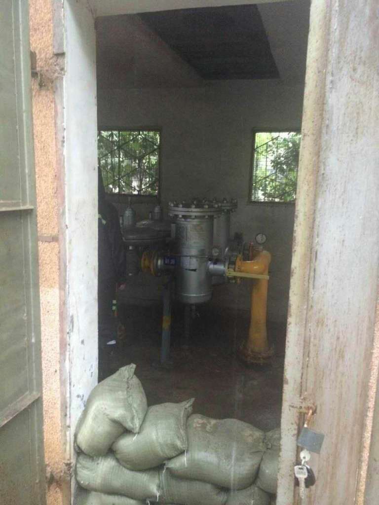 管網(wǎng)運(yùn)行部門加大對調(diào)壓站高頻次排查,實行專人對點(diǎn)蹲守,防止積水對調(diào)壓柜運(yùn)行造成影響,其中錢牌樓調(diào)壓站2日上午在強(qiáng)降雨后出現(xiàn)了較深積水,公司立即增派人手清除。2日晚的連續(xù)暴雨致紡織南村調(diào)壓站周邊開始出現(xiàn)大面積積水,搶險人員立即筑起沙包防線,保障了調(diào)壓站正常運(yùn)行。工程施工人員重點(diǎn)加強(qiáng)對在建工地的安全防護(hù),出動30余人次仔細(xì)檢查未完工的各路段管道敷設(shè)現(xiàn)場,必要的進(jìn)行現(xiàn)場路面防護(hù),避免施工雜物堵塞排水口影響排水。生產(chǎn)運(yùn)行人員全員到崗,加大供電系統(tǒng)巡查頻率,暴雨過后及時抽水,保障供電系統(tǒng)安全,同時及時疏通站內(nèi)、外排水系統(tǒng),保持站內(nèi)排水順暢。同時,安慶港華嚴(yán)格貫徹落實市防指、市城防指及住建委防汛工作會議精神和相關(guān)要求,積極響應(yīng)政府應(yīng)急指令,對應(yīng)啟動公司《防汛排澇應(yīng)急預(yù)案》,除完成保障燃?xì)獍踩?yīng)主要任務(wù)外,根據(jù)住建委要求,調(diào)集力量值守龍眠山路段,清除排水口雜物,打開雨水井加速路面積水排放,并安排專人提醒過往車輛及行人注意安全。