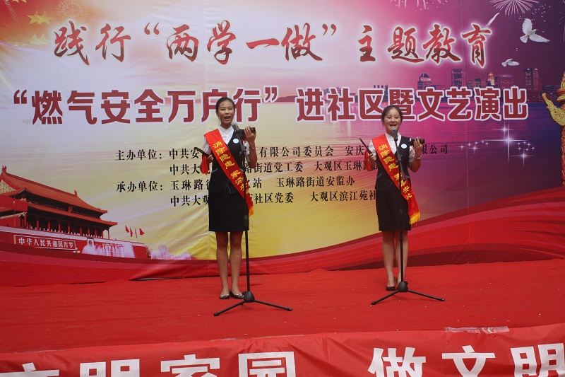 9月9日,安慶港華燃?xì)獍踩叭f(wàn)戶行”走進(jìn)濱江苑社區(qū),與社居委文藝工作者一道,以豐富多彩的文藝演出形式向社區(qū)居民宣傳安全知識(shí),提升社區(qū)居民燃?xì)獍踩庾R(shí),掀起企民共創(chuàng)燃?xì)獍踩嘛L(fēng)尚。這是今年安慶港華燃?xì)獍矙z整改年攜手社區(qū)開展“消除隱患 家添安心”活動(dòng)以來(lái)公司走進(jìn)的第25個(gè)小區(qū)。